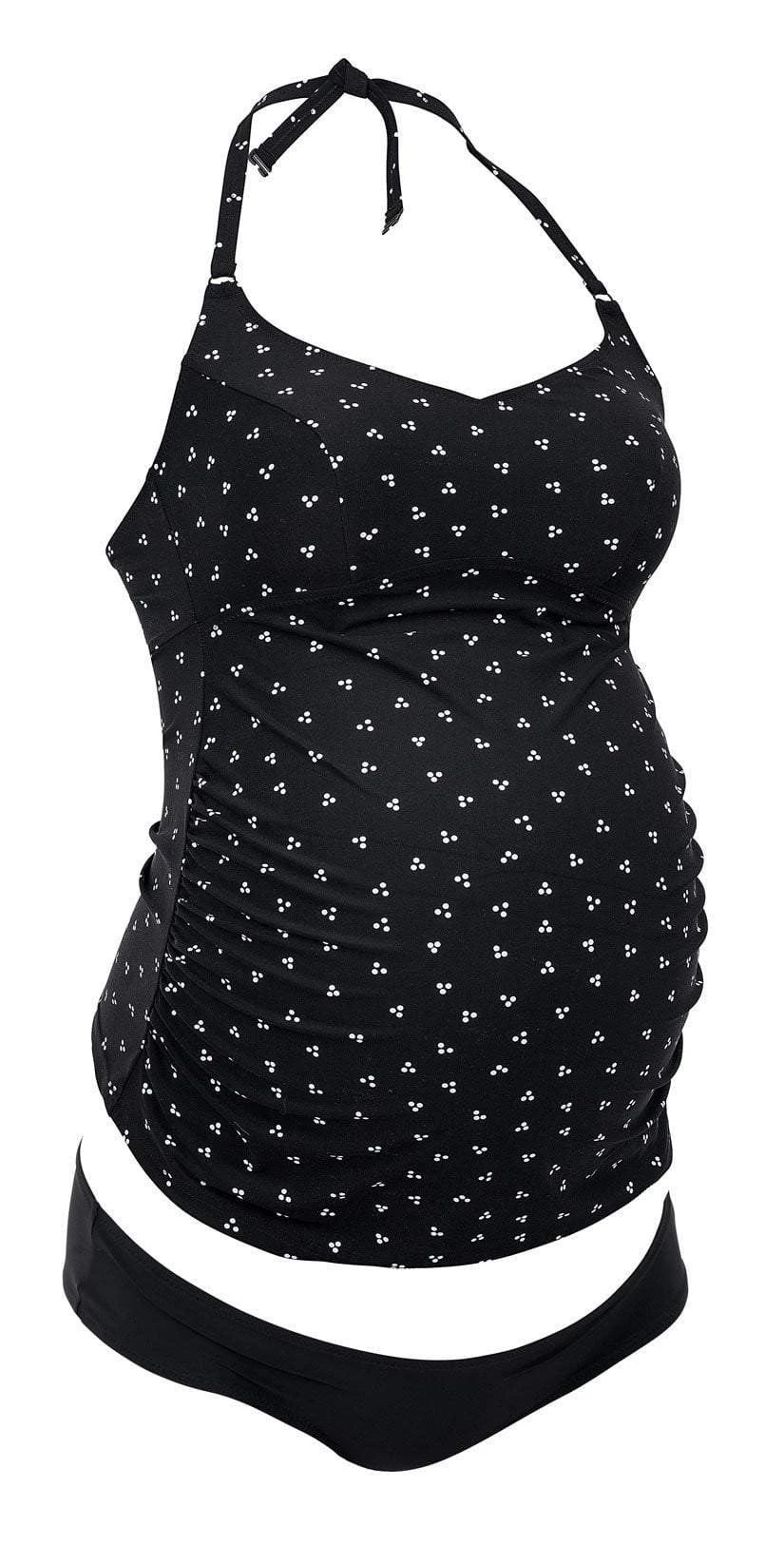 Show your glow in this classy Maternity Lelepa Tankini from Anita. Cute Black and White print in a forgiving silhouette that will highlight your baby bump perfectly.