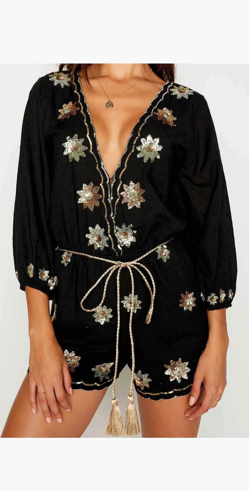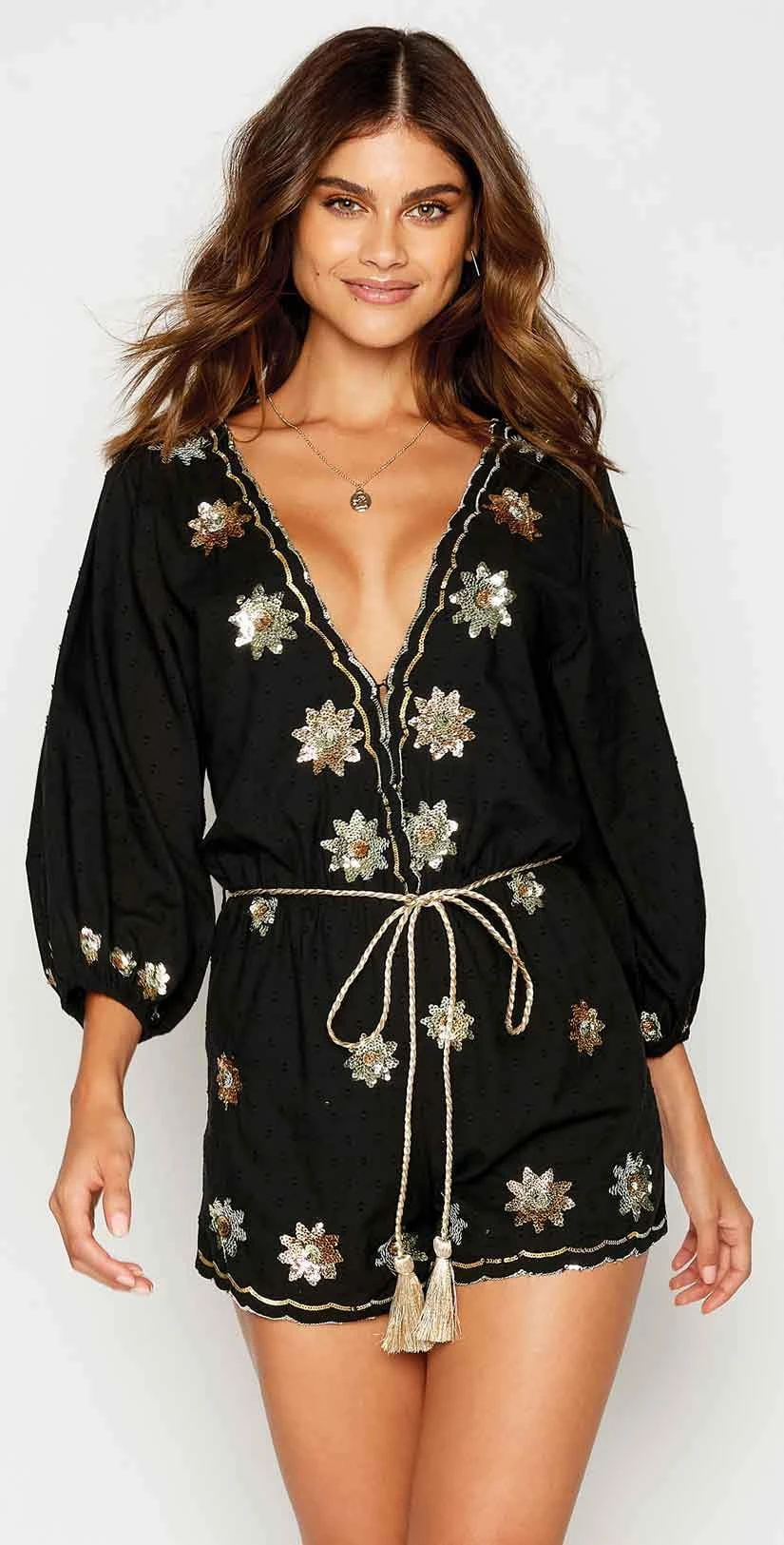 The Myra Kaftan is not your ordinary cover up. The dotted swiss fabric and hand sewn sequins really takes it up a level.