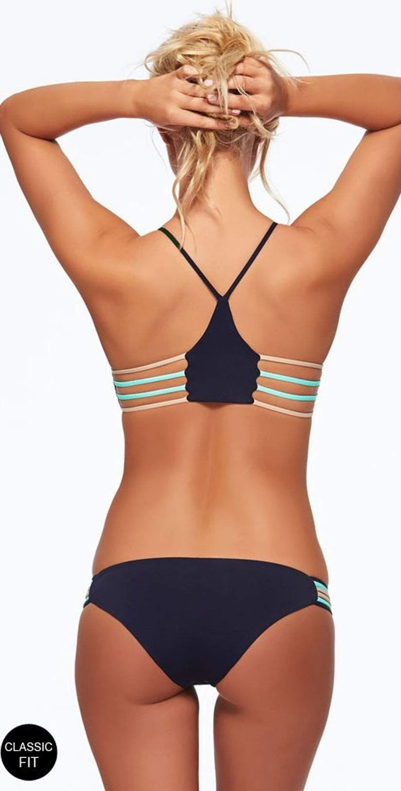 This L Space Oasis Bottom in Full Cut features a playful two-toned, 6-strap detail with seamless construction for a sexy, comfortable fit. This bottom offers a classic hipster fit with moderate to full back coverage.