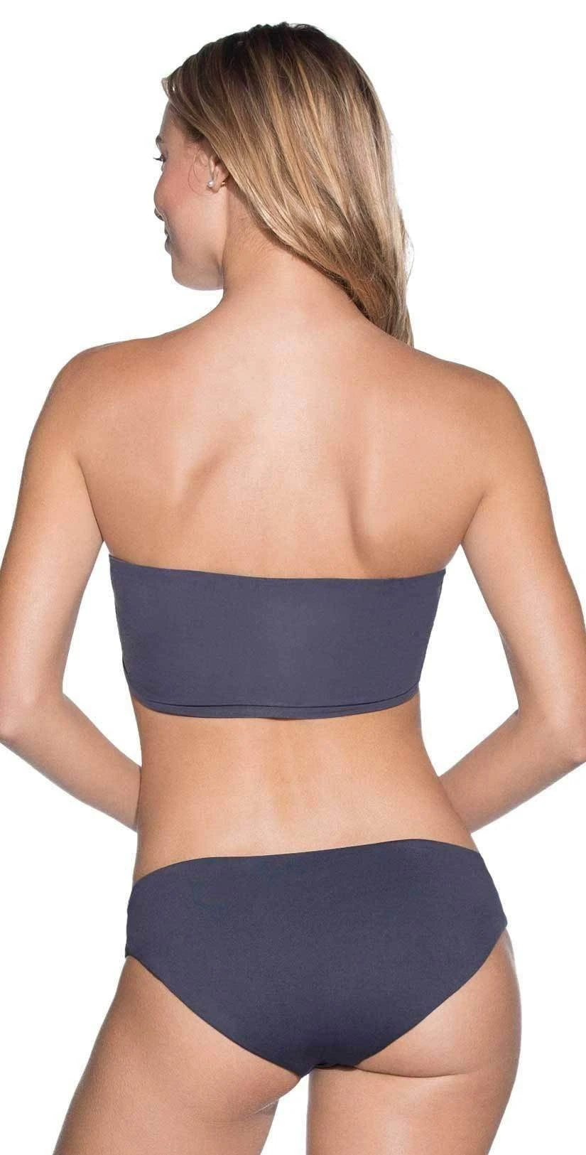 The Maaji Moonless Night Bandeau Top is a navy blue bandeau top that can be worn with a keyhole in the front or back. Reverses to a reef pattern. This top offers side boning for added support and comes with adjustable, removable straps. Pair with the matching Maaji Moonless Night Sublime Bottom.