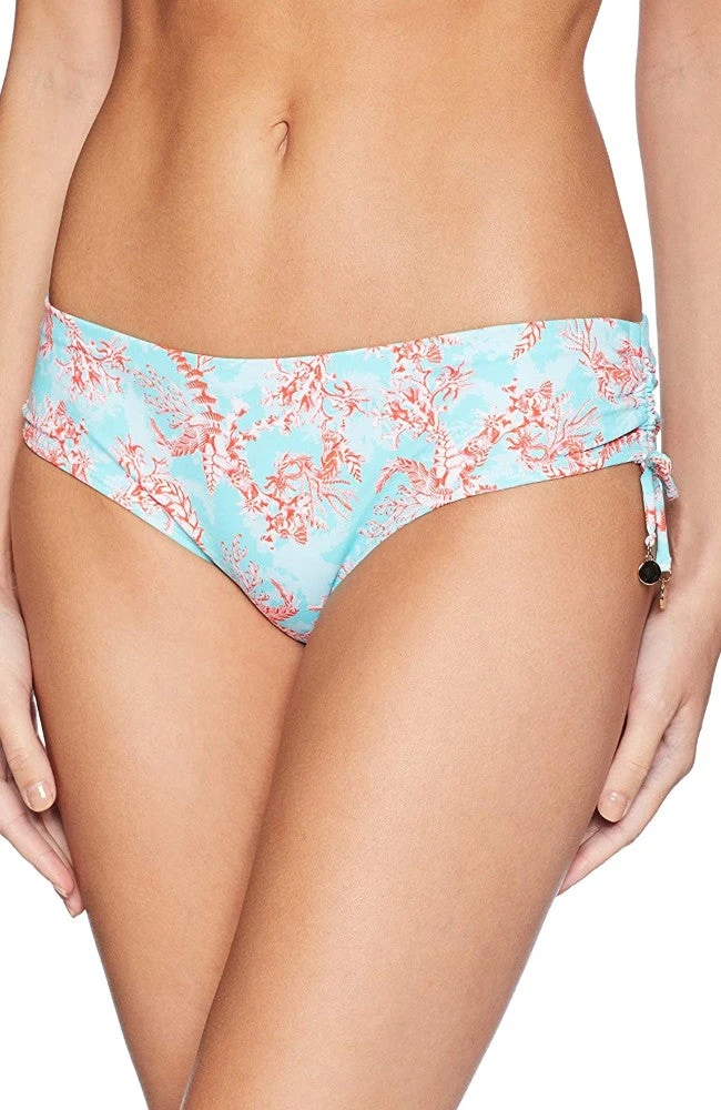 This OndadeMar Watery Printed Bikini Bottom features a low-rise design with adjustable drawstring sides. This bottom is fully lined and offers cheeky to moderate coverage.