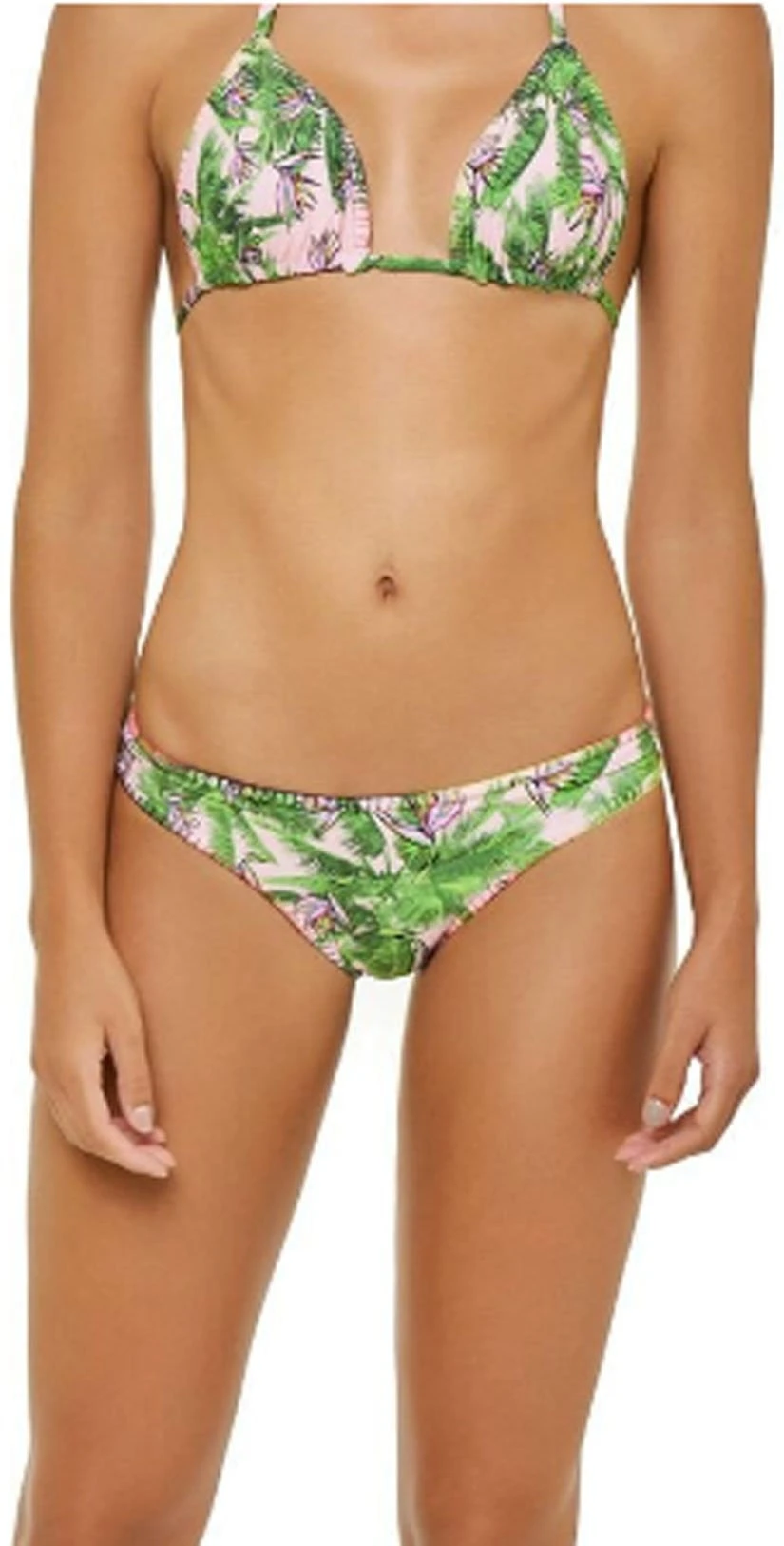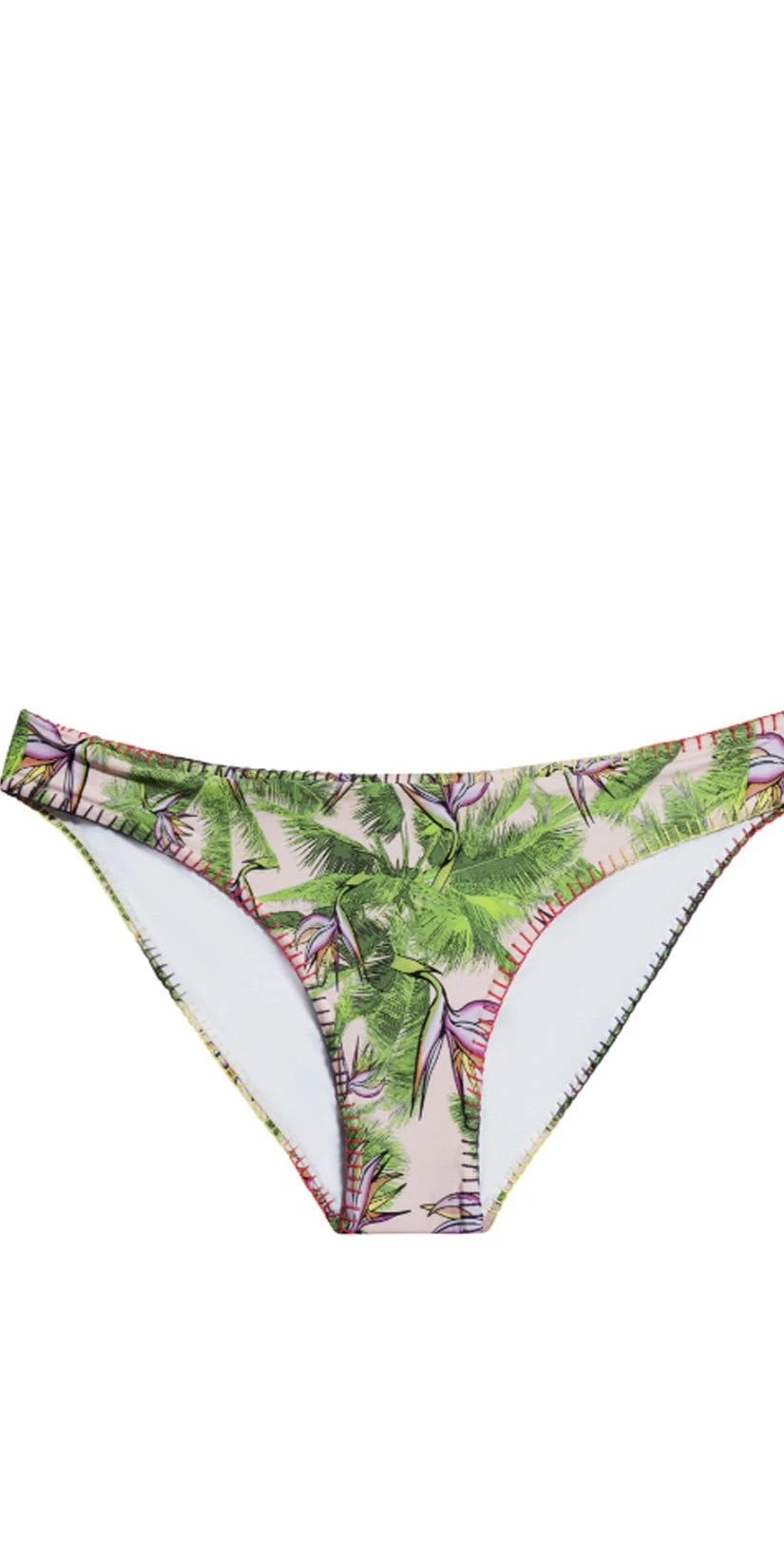 The PilyQ Bermuda Stitched Bottom is a pink and green floral palm print design featuring a stitch design along the hem. Its low rise style offers you fearless beach babes teeny coverage in the back with a ruched detail for that flirty touch! Pair with the Bermuda Stitched Triangle Halter Top for a perfect match!