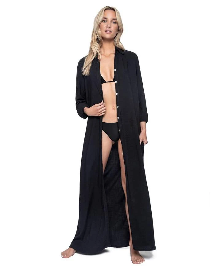 Look and feel sophisticated and sexy in this long button down cover up. The perfect addition to any swim outfit!