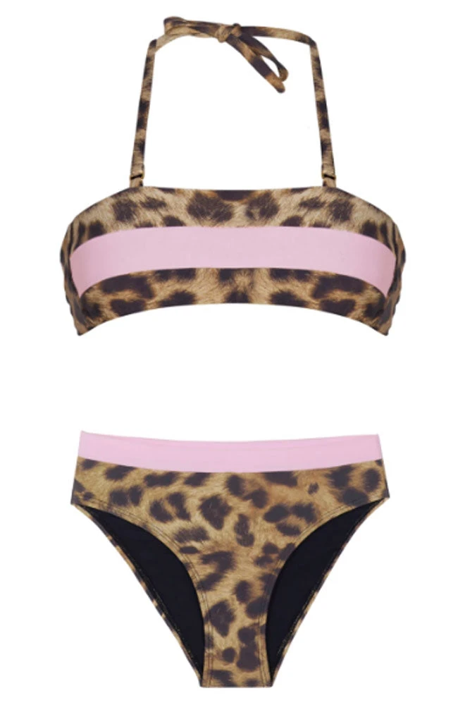 The PQ Swim Colorblock Bikini is the perfect suit for your girls to wear to the beach or pool. This all over animal print bikini features a light pink color block detail and offers adjustable straps and a high waist bottom.