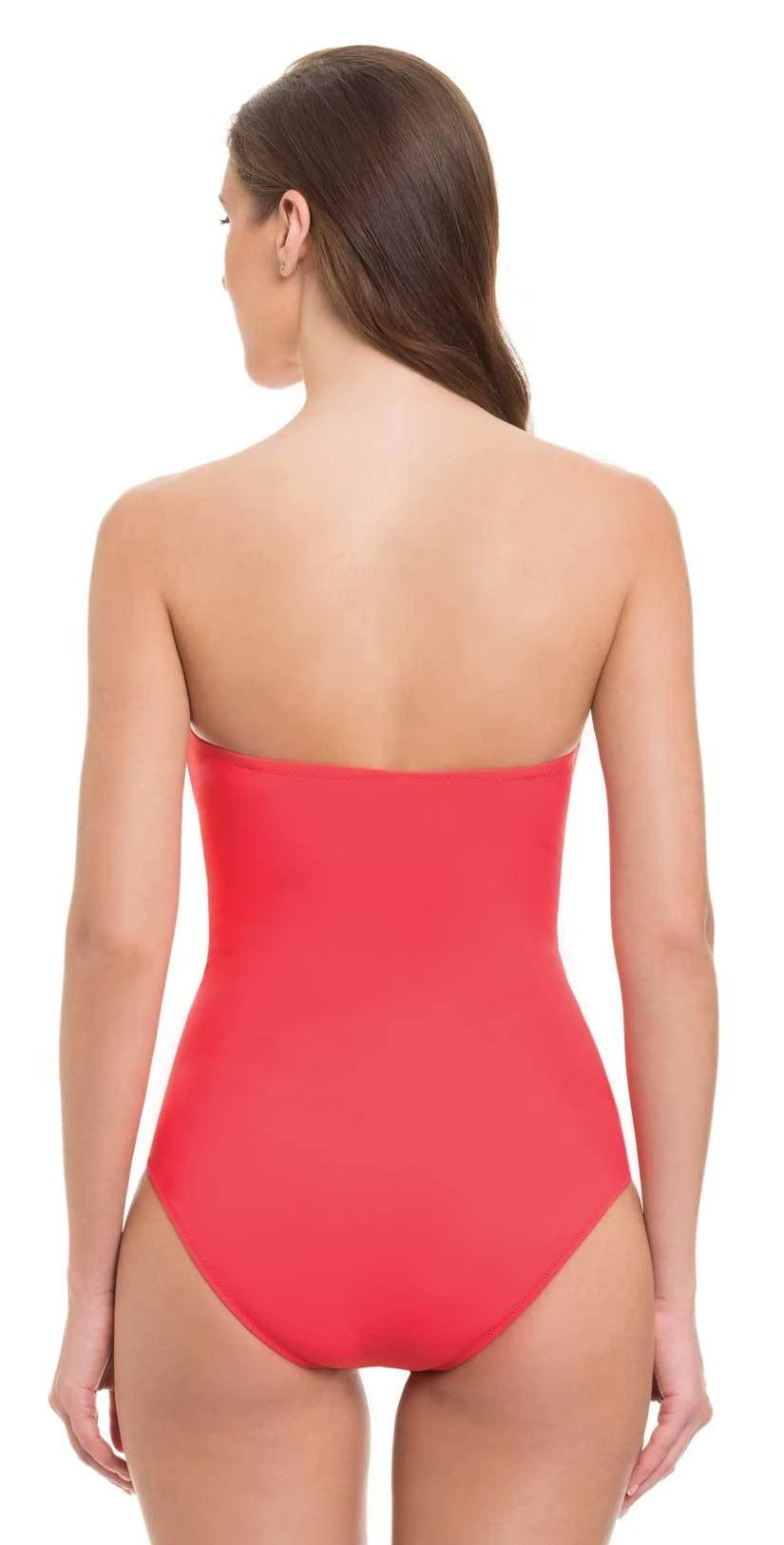 The Profile By Gottex Tutti Frutti Cross Bandeau One Piece in coral is a crossed front with underwire, molded cups, tummy control and a full coverage bottom. This bright coral one piece has removable and adjustable straps, front ruching for a figure-flattering form and a straight back for support and comfort.