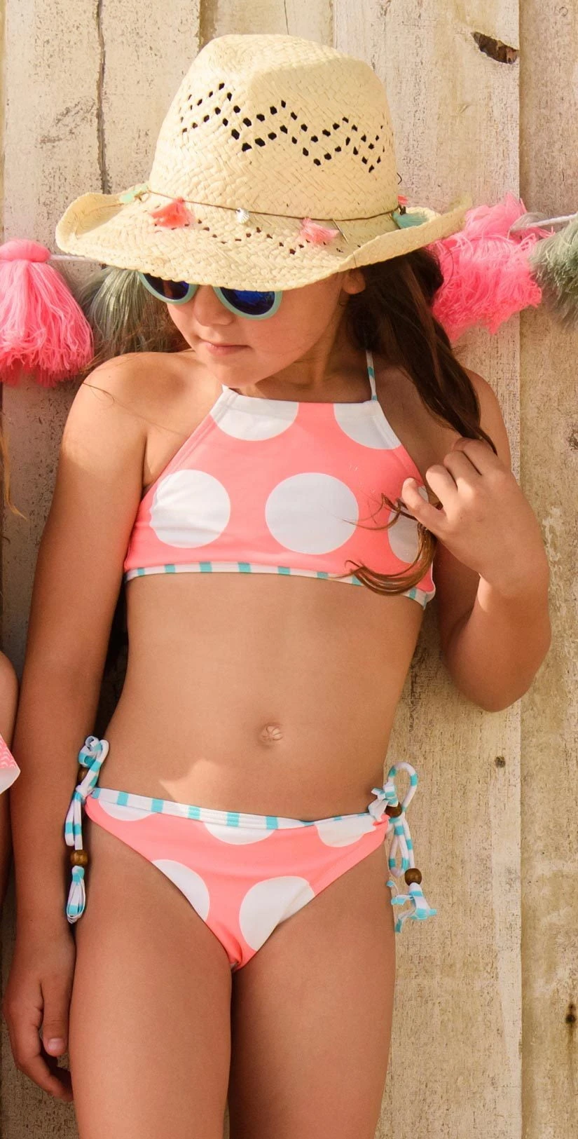 Snapperrock Girl’s Neon Coral Spots Halter Bikini Set G15042