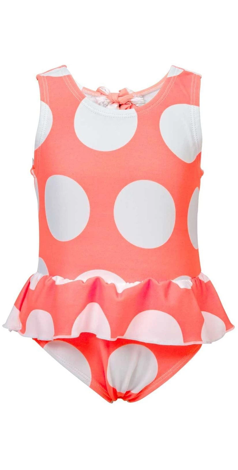 Snapperrock Little Girl’s Neon Coral Spot Skirted Swimsuit G13075