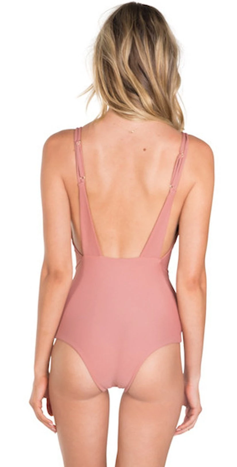 The Tori Praver Elena One Piece Swimsuit in Spice features seamless construction with a plunging neckline and no cups. The double shoulder straps are adjustable, the back cuts across at mid back and the bottom offers cheeky coverage.