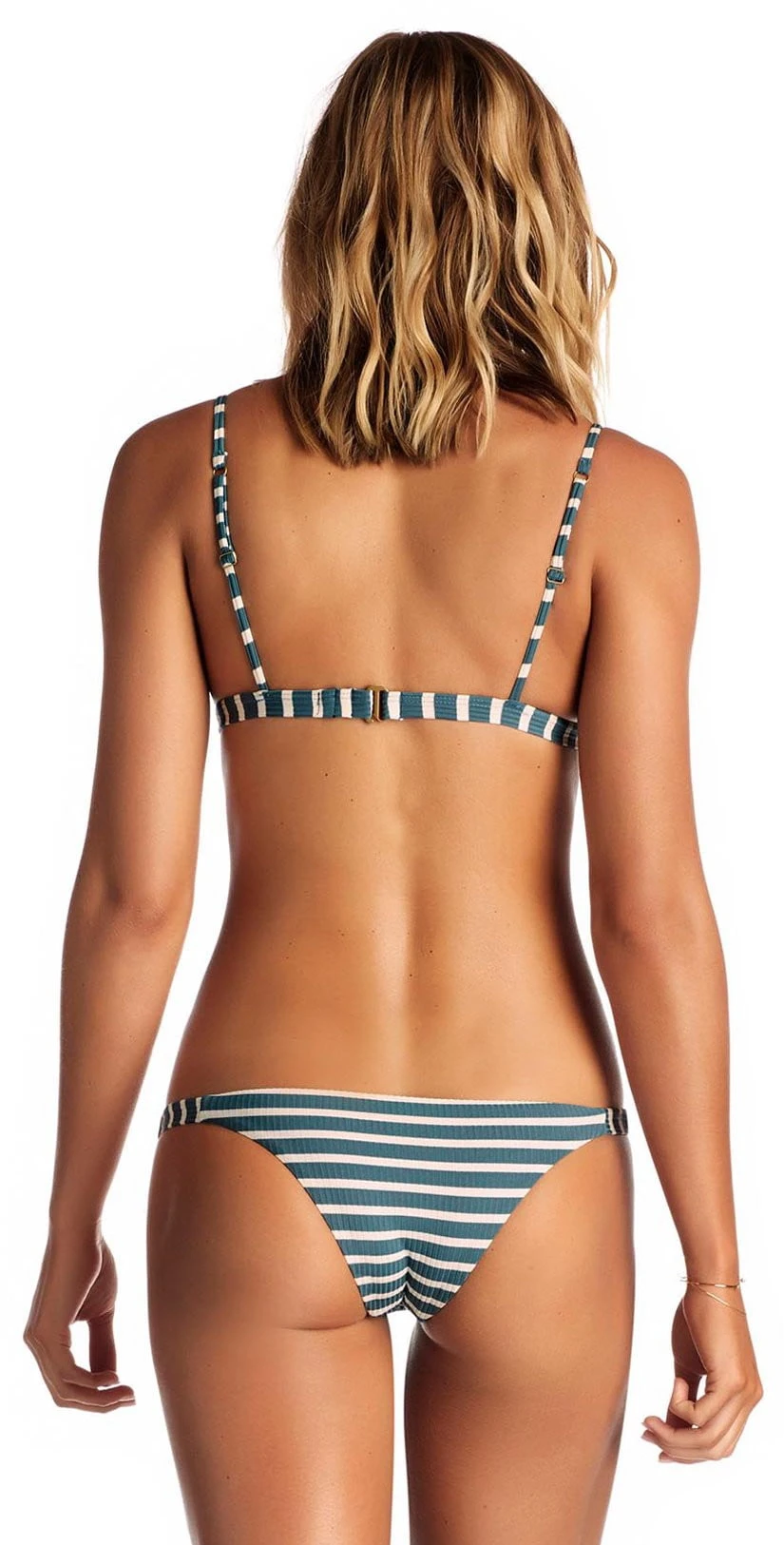 The Vitamin A Moss Bikini Top in Grey Marin Stripe is a sporty bralette style top offering triangle cups with light padding, adjustable shoulder straps and a hook back closure. Pair with your favorite Full Cut or Teeny Cut Bottom from the Marin Stripe Collection.